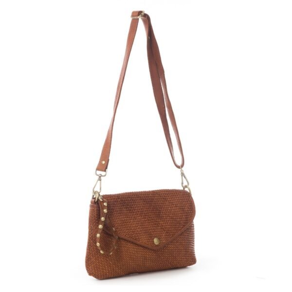 👜 Amelia Leather Handbag in Cognac – Woven Leather Envelope Bag for Effortless Sophistication