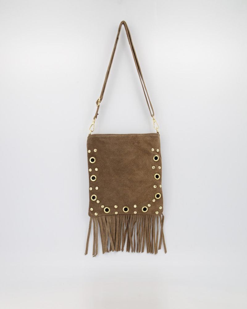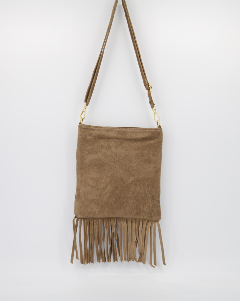 The Chelsa Suede Handbag in Taupe is a refined take on relaxed bohemian style, blending soft neutral tones with everyday practicality. Crafted from 100% premium suede leather, this versatile bag features gold-tone hardware and playful fringe detailing, adding texture and movement to a timeless silhouette.