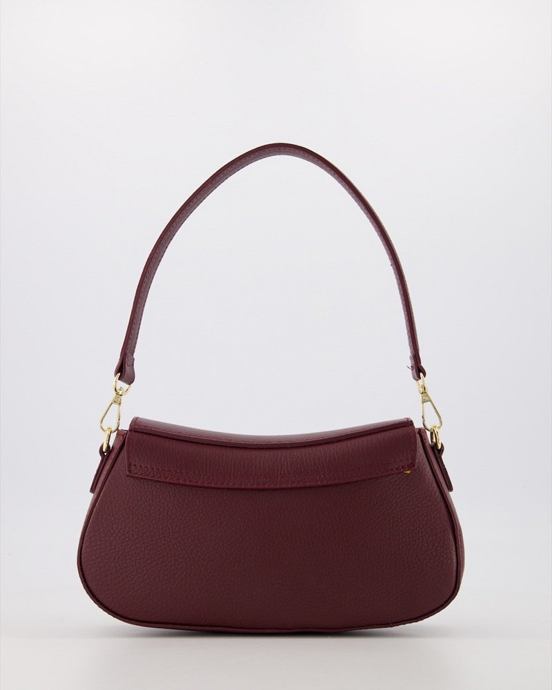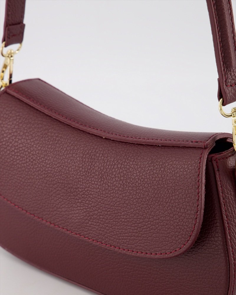 👜 Delara Leather Shoulder Bag – Burgundy| Shoulder & Crossbody with Gold Hardware