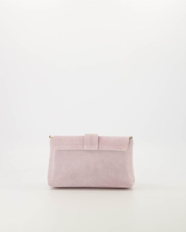 The soft pink suede paired with bronze-tone hardware gives this bag a warm, feminine elegance that works beautifully for both daytime and evening wear.