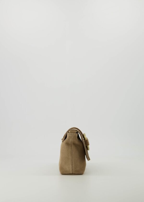 The soft beige suede, accented with warm bronze-tone hardware, brings a refined yet relaxed charm. Its neutral shade makes it endlessly versatile, pairing seamlessly with both bold colors and muted palettes across all seasons.