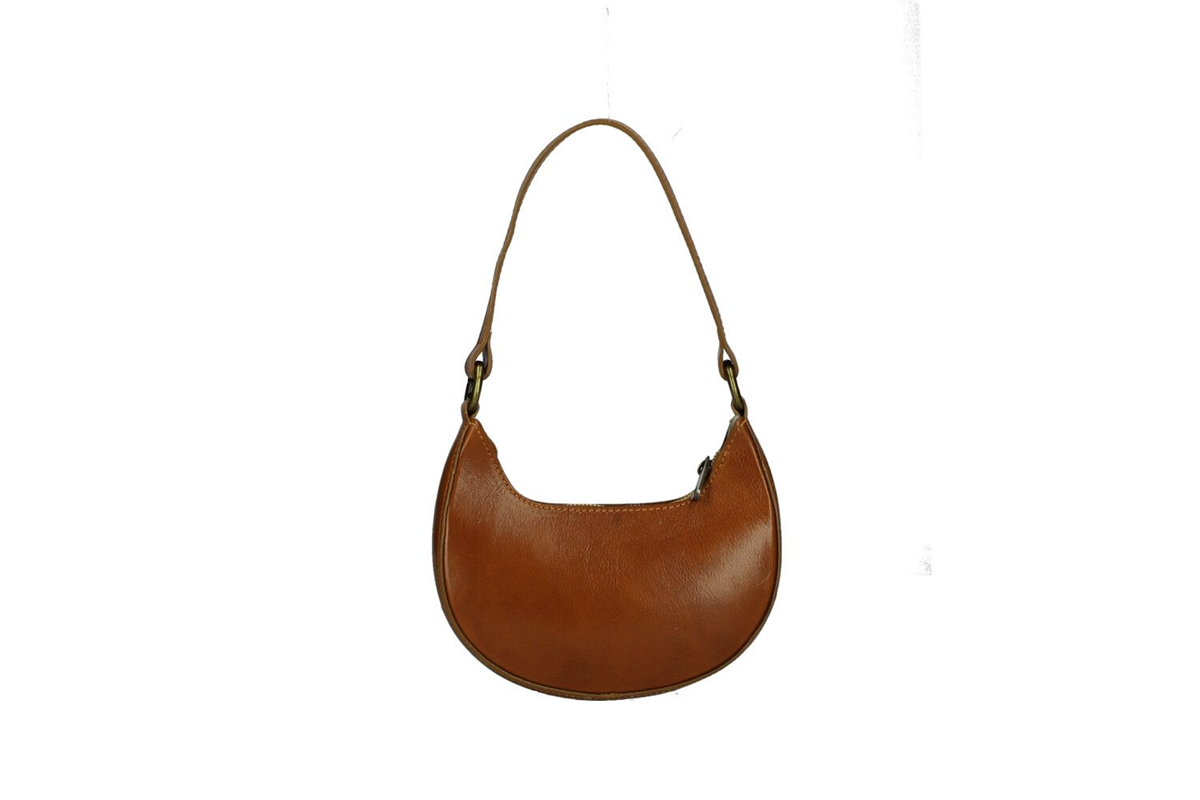 The bag opens with a smooth zip closure, revealing a single compartment lined in durable polyester, ideal for carrying your phone, small wallet, and daily essentials. Finished with brass details, Iris blends sophistication with practicality — a perfect go-to accessory.