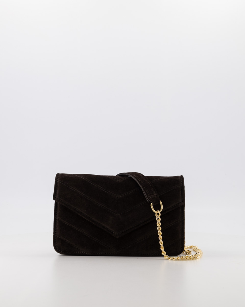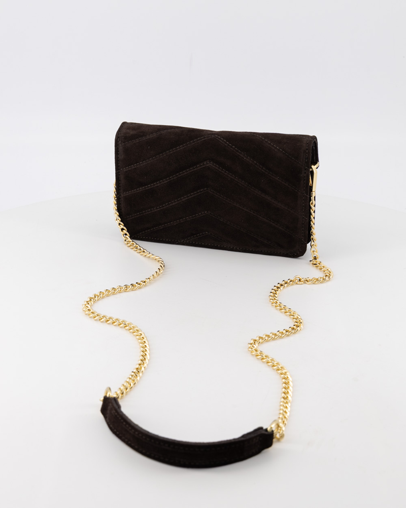 The Liana Suede Crossbody Bag in Dark Brown blends classic luxury with everyday versatility. Handcrafted in Italy from premium soft suede leather, this bag features a rich dark brown hue that adds warmth, depth, and effortless sophistication to any look.