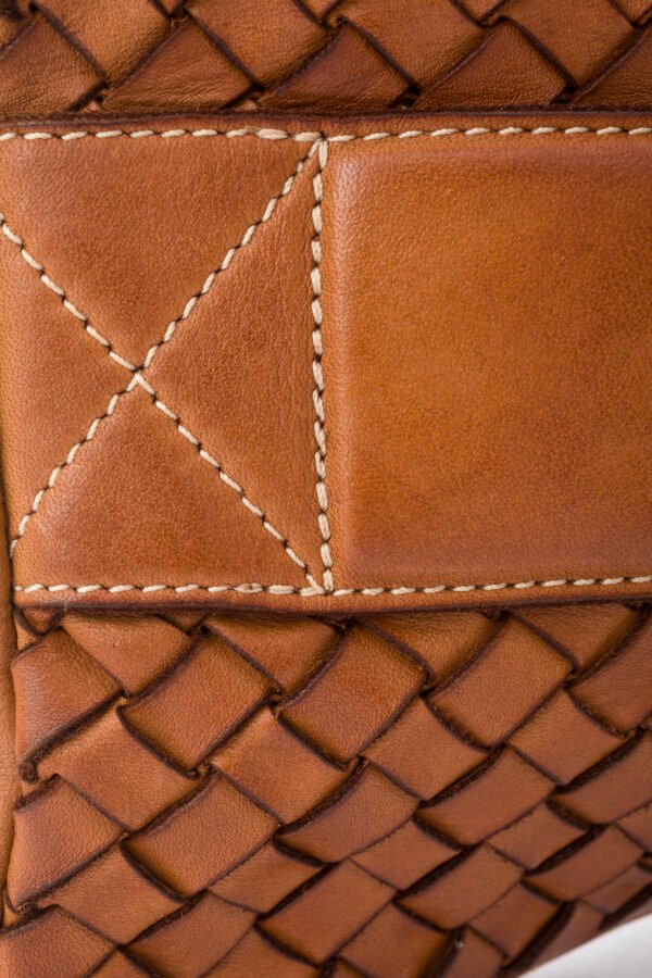 🌟 Distinctive design – bold wide weave with smooth leather hand-through stripe