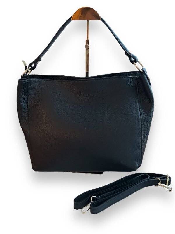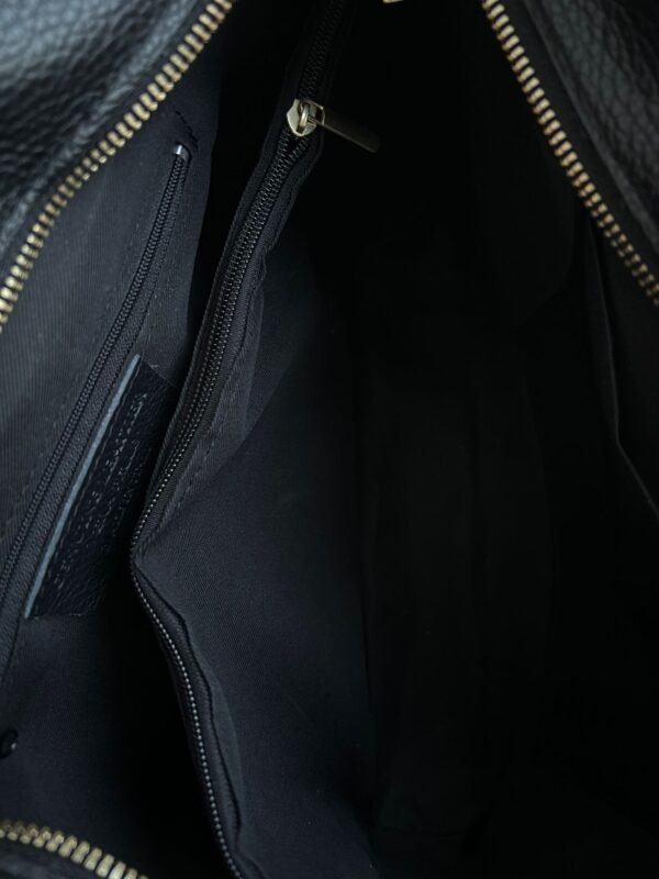 Madrid is a leather handbag with a zipper that can also be worn as a shoulder bag and crossbody bag. The Madrid bag has a large inner compartment with a lockable intermediate compartment, a slip pocket and a zipper pocket. The bag is made of genuine leather and has gold-colored hardware.
