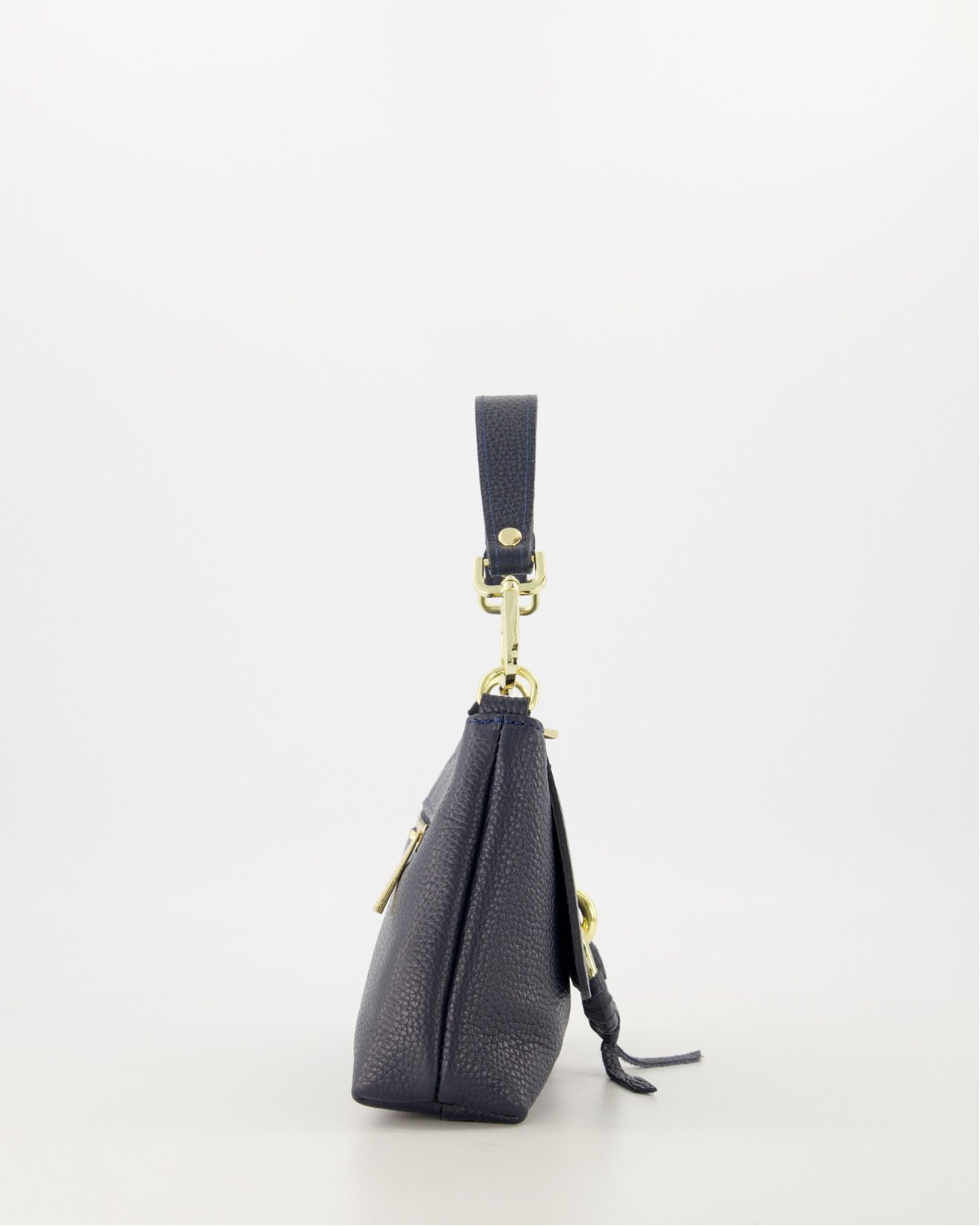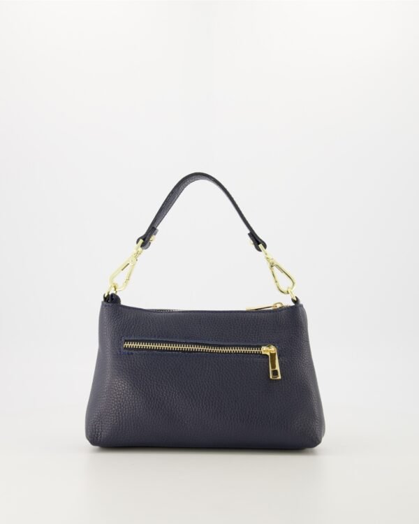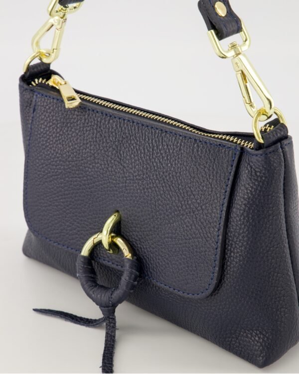 Pair the Maria Dark Blue Leather Bag with a cream or grey outfit for a chic contrast, or wear it with denim for an effortlessly coordinated look.