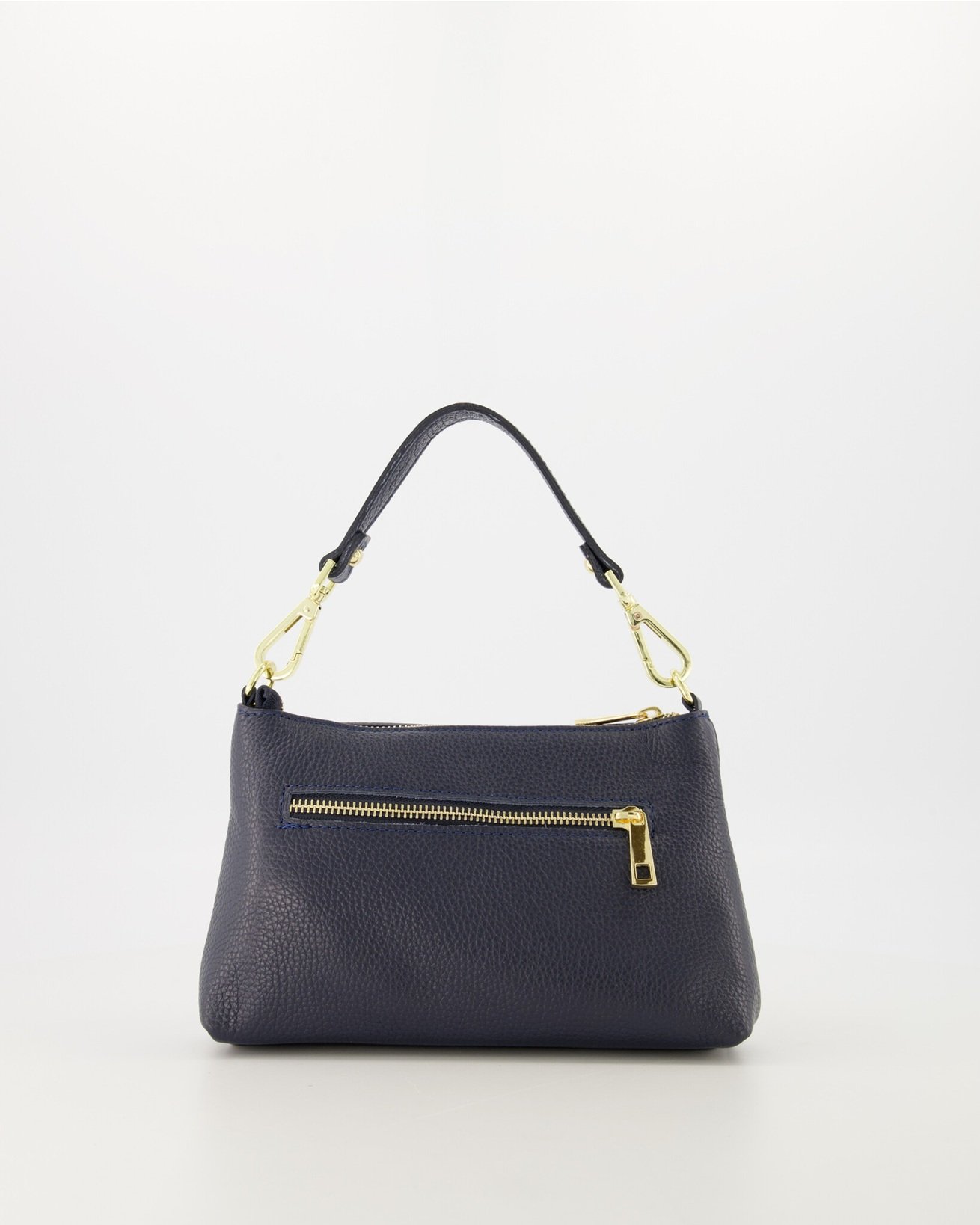 💙 Maria Classic Grain Leather Handbag | Dark Blue – Timeless Versatility in Italian Craft