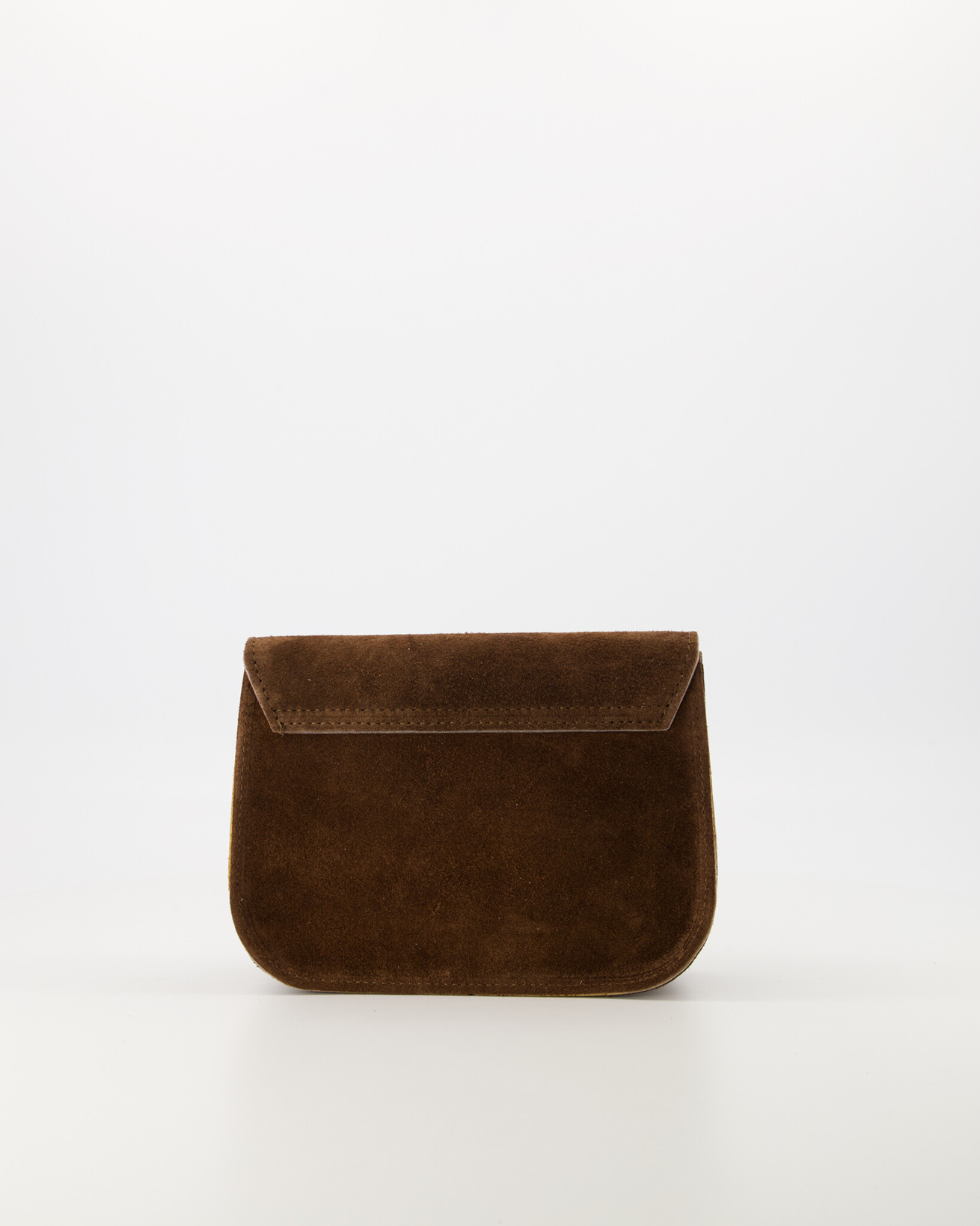 Inside, the bag provides just the right amount of space for your phone, wallet, keys, and makeup essentials. The deep dark brown suede and minimalist silhouette make it an easy match for both casual and semi-formal outfits.