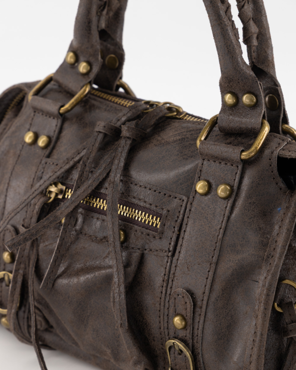 Pair the Roje handbag with neutral tones like cream, beige, or grey for an effortlessly chic outfit, or contrast it with lighter shades to let its deep dark brown hue stand out.